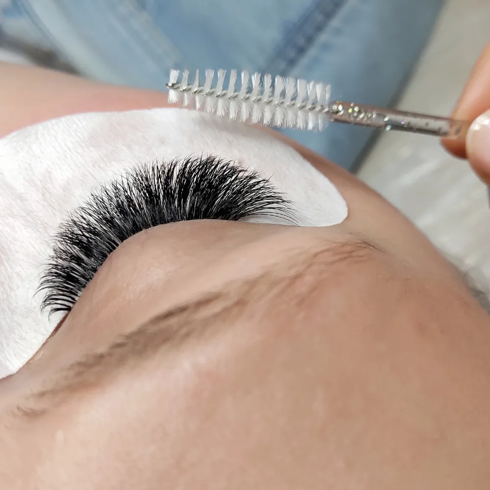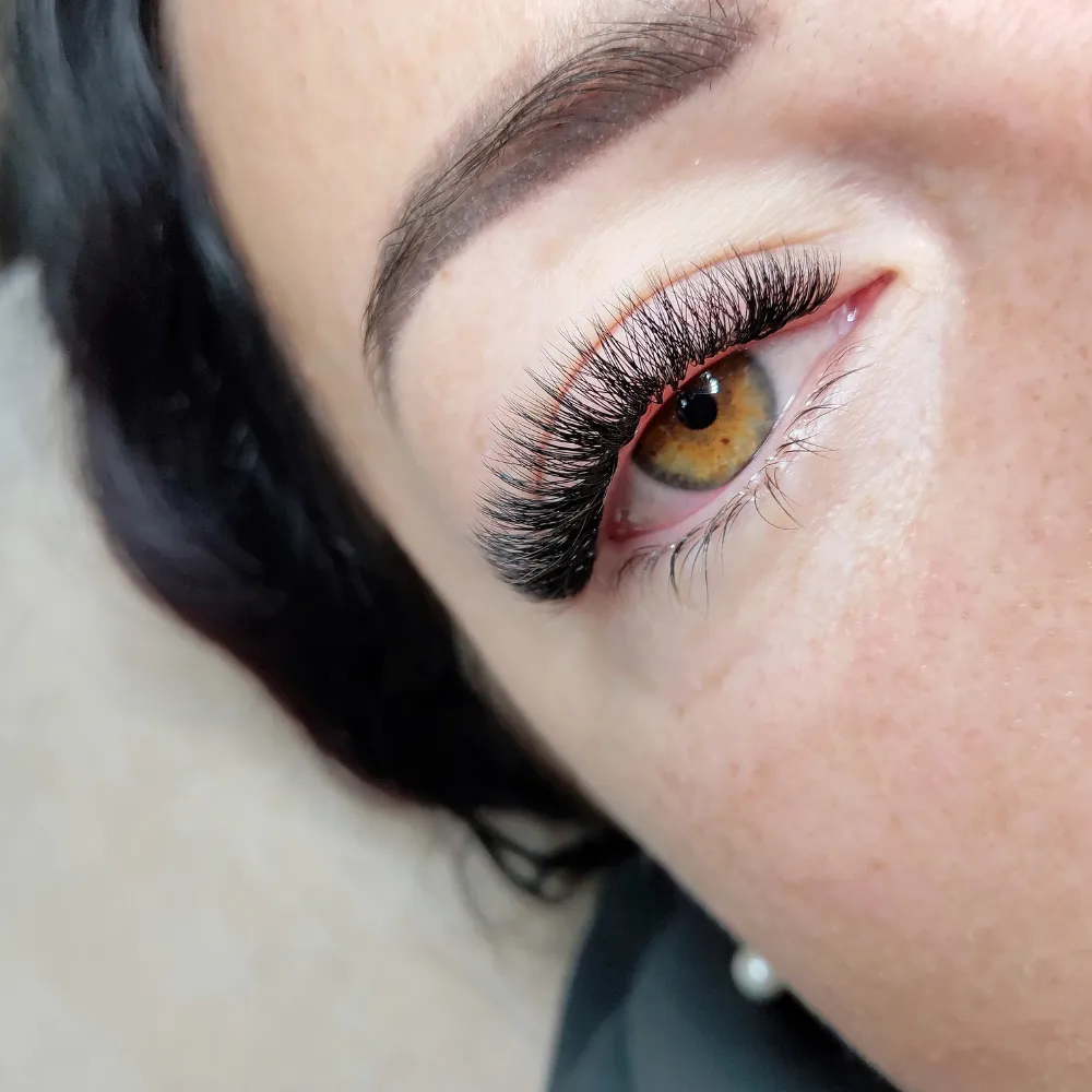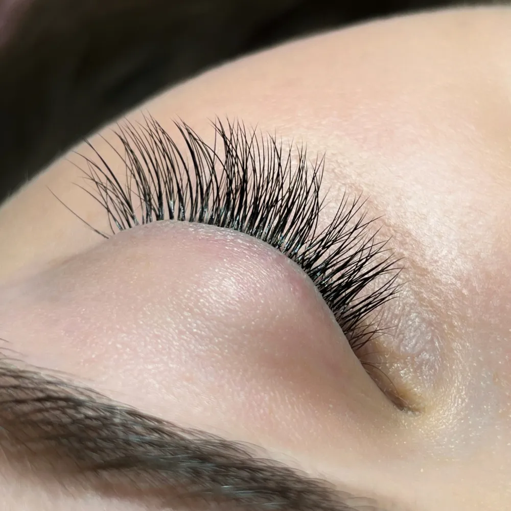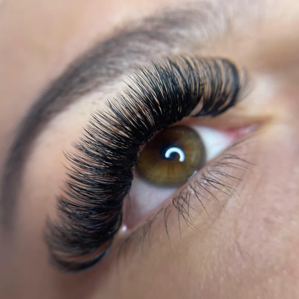 Hybrid lash extensions combine the definition of classic lashes with the fullness of volume lashes. This versatile style blends both techniques for a soft, textured look that’s perfect for adding a bit more drama without going too bold.